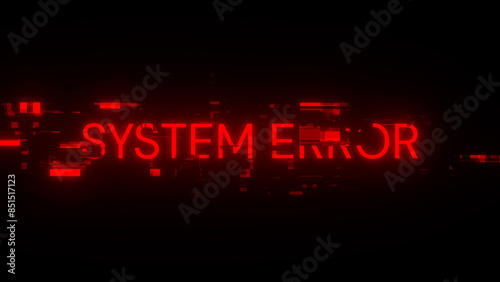 3D rendering System error text with screen effects of technological glitches