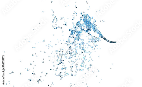 3d water splash transparent, clear blue water scattered around isolated. 3d render illustration