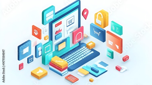 3D Web Vector Illustrations. Online shopping.Design graphic elements signs symbols. Mobile marketing and digital marketing.