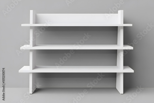 3d White Empty Product Display For Supermarket With Shelves mock up Isolated on white background. Retail shelf, ,display mockup.