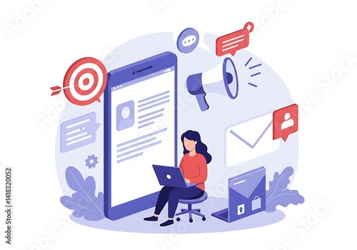 3d Woman using marketing tools