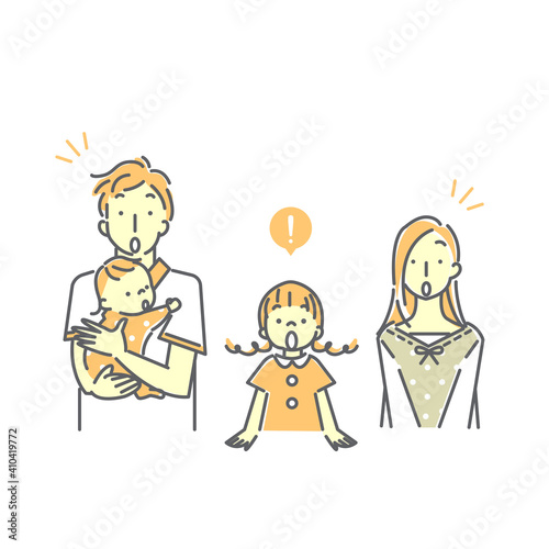 シンプルでおしゃれな4人家族の線画イラスト素材 びっくり