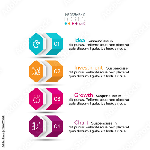 4 workflows through hexagonal layout, used for business planning, company or advertising. vector illustration.