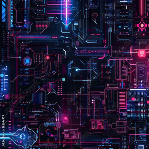 46. Quantum coding interface, cyberpunk, dark palette, vector art, detailed and high-tech coding scene