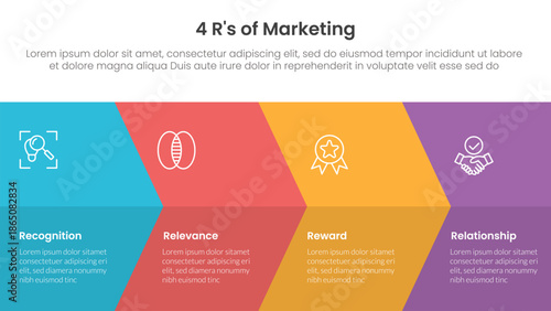 4R of marketing infographic 4 point stage template with big arrow fullpage combination for slide presentation