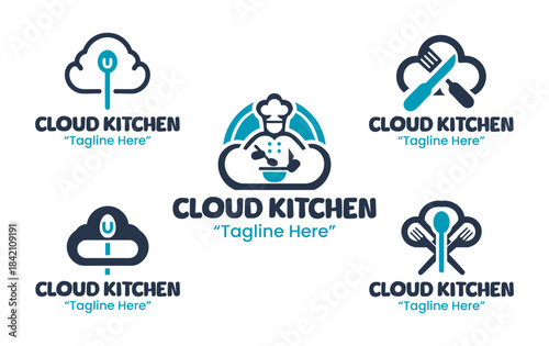 5 Cloud Kitchen Logo Set Virtual Restaurant Branding Collection