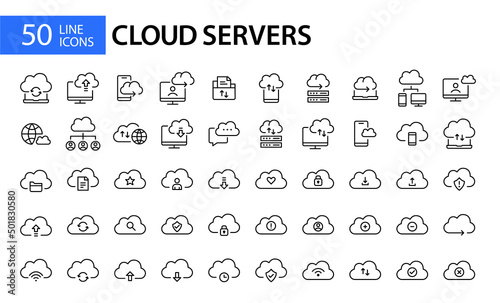 50 cloud storage server icons. Pixel perfect, editable stroke line art