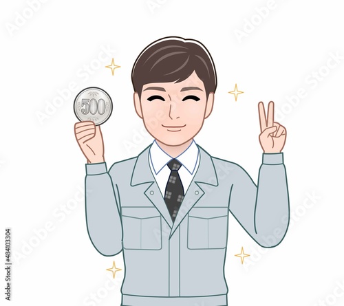 500円玉をもつ男性