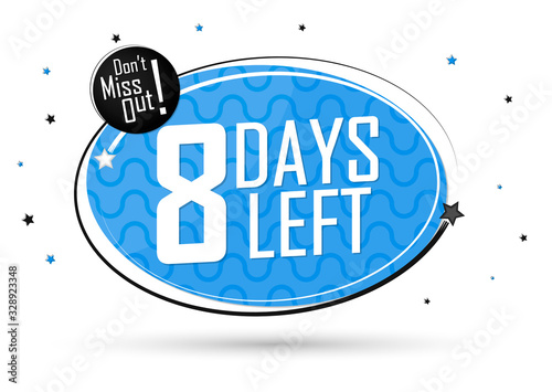 8 Days Left, countdown tag, sale banner design template, start offer, don't miss out, vector illustration