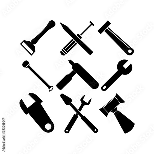 9 Set working tools icon silhouette illustration