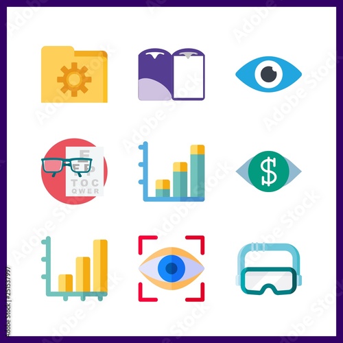 9 visual icon. Vector illustration visual set. eye scan and folder icons for visual works