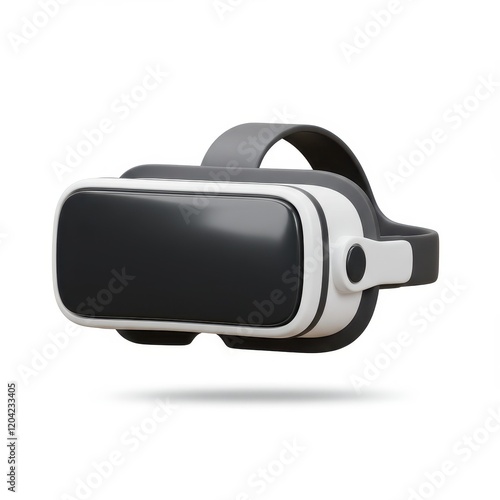A 3D illustration of a futuristic VR headset with a glossy black screen and a silver-white frame symbolizing advanced technology isolated on a white background