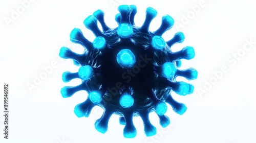 A 3D illustration of a virus particle, highly detailed, glowing bioluminescent accents, futuristic style, isolated on white background