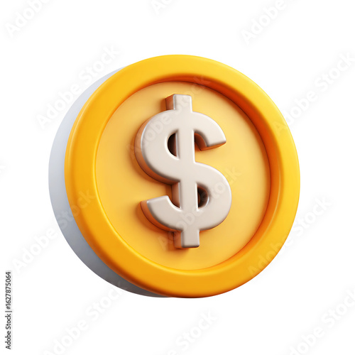 A 3d render of a gold coin with a silver dollar sign in a close up view on transparent background