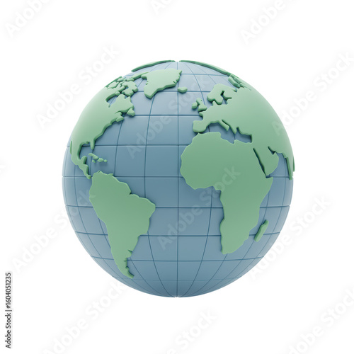 A 3D rendered Earth globe, showing continents on a blue grid against black.