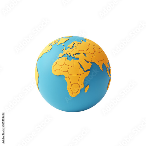 A 3D representation of a globe, featuring a blue ocean and a yellow-brown landmass, highlighting the continent of Africa and parts of Europe