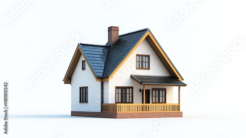 A 3D-rendered house isolated against a white background.