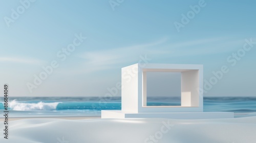 A beach house blueprint with a detailed 3D model, with the ocean waves in the background, flat design illustration, high-resolution photo, realistic photo, cinematography