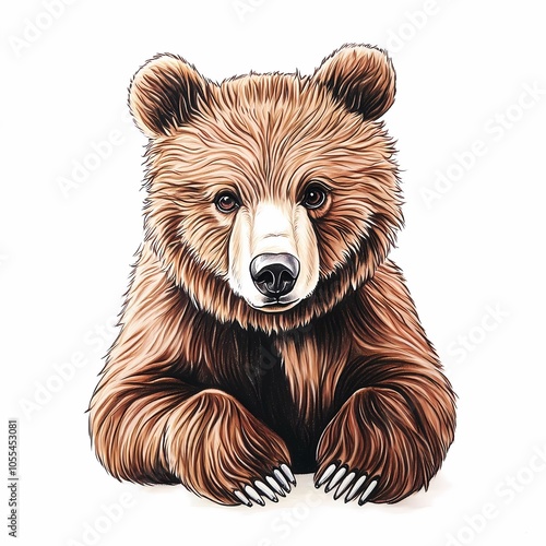 A bear hand drawn with colored pencils, style watercolor, isolated, clipart