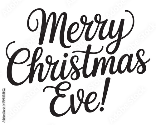 A beautiful black script font displays the words "Merry Christmas Eve!" on a white background, perfect for holiday greetings.