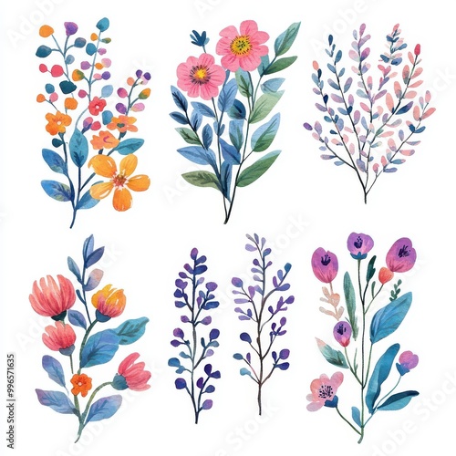 A beautiful collection of colorful floral illustrations, showcasing a variety of vibrant blooms and delicate foliage.