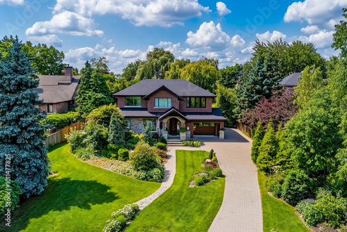 A beautiful home with a large, well-maintained lawn and landscaping