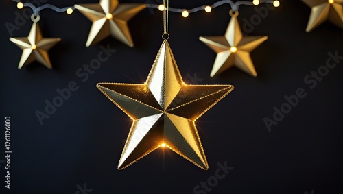 A beautiful illustration of a golden star ornament giving off a pleasant glow with a gold star light hanging on a black background