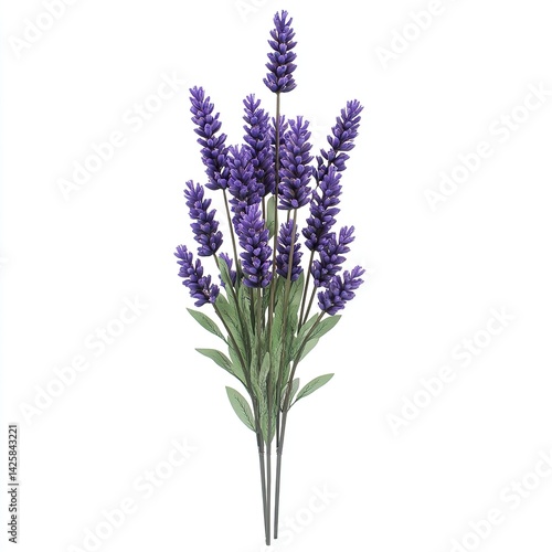 A beautiful lavender flower 3d Clipart front view isolated on a white background