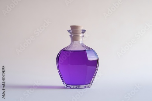 A beautiful purple liquid in a glass bottle showcasing elegance. The design is modern and captivating. Ideal for artistic or product displays. Generative AI