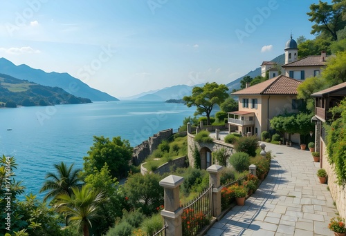 A beautiful river pass residence, blue sky, beautiful sea and natural paintings