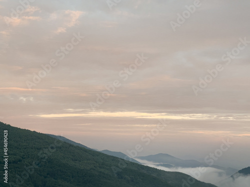 a beautiful view of mountains with clouds at dawn