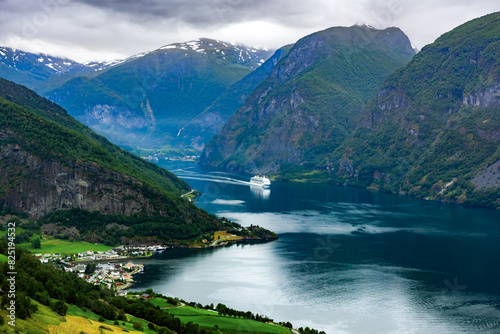 A big cruise liner in Sunnylvsfjorden fjord near Geiranger village in western Norway