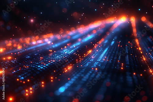 A binary background with dark blue and touches of neon highlights creating a technological and futuristic aesthetic