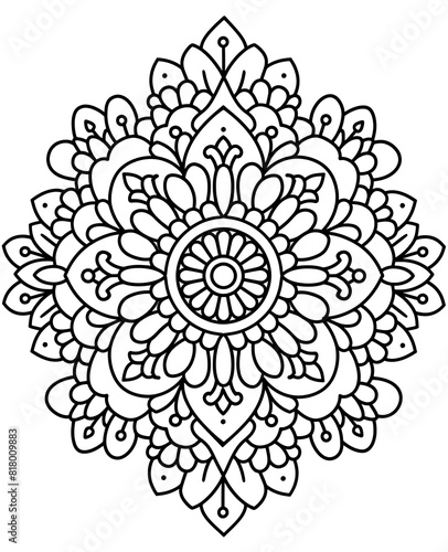 A black and white drawing of a flower with a white center. The flower is surrounded by a pattern of lines and dots. The drawing has a serene and calming mood, as the flower