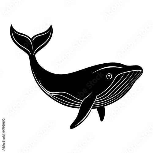 A black and white drawing of a whale on white background