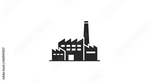 A black and white graphic illustration of a factory with a tall smokestack on a white background ai generated