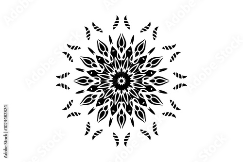 A black and white illustration of a flower, showcasing intricate details and elegant lines in a minimalist design