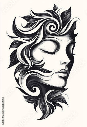 A black and white tattoo design