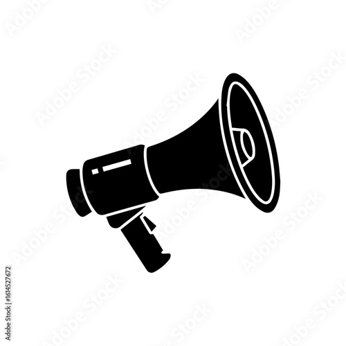 A black silhouette illustration of a megaphone or bullhorn, angled slightly to the right.