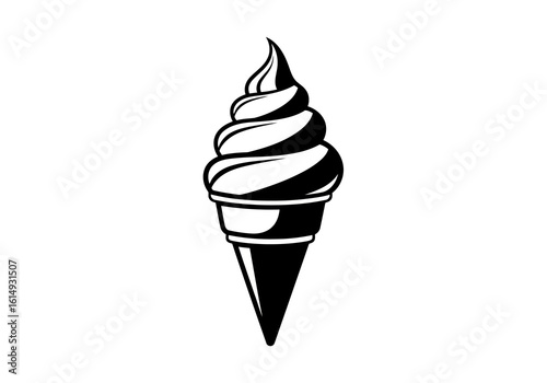A black swirl ice cream cone is isolated on white background