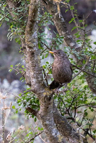 A Blackbird Female on a Tree Branch