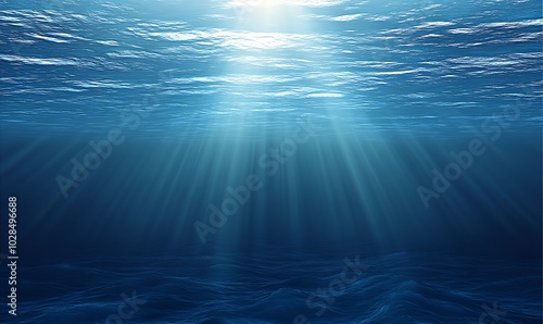 A blue ocean with sunlight shining through the water surface