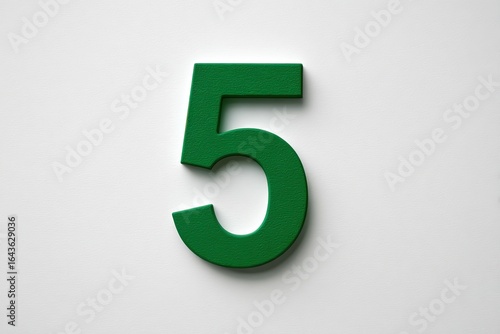 A bold, dark green number 5 on a bright white surface
