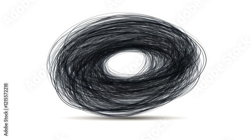 A bold, handdrawn grunge scribble featuring circular and elliptical shapes in black marker on a clean white canvas.
