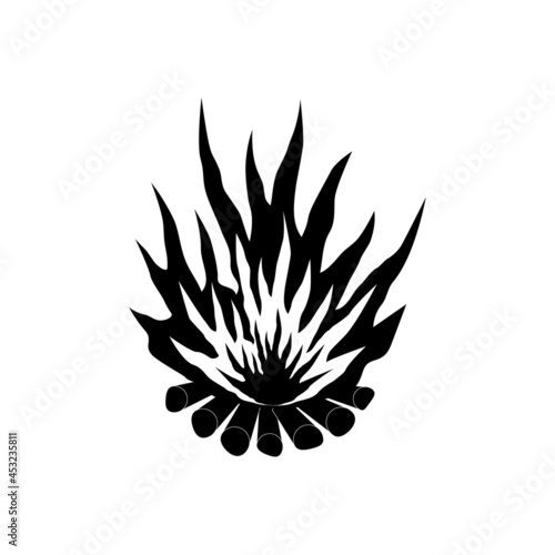 A bonfire with a flame and firewood on a white background.
