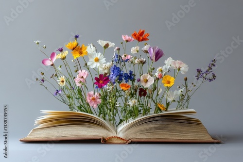 A Book Filled with Wild Flowers Blooming in a Peaceful Scene