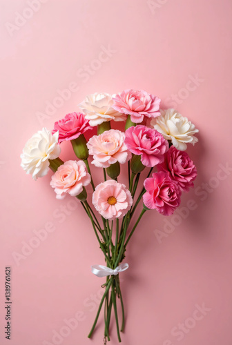 A bouquet of carnations on a pink background. Mother's day image. Expressing gratitude.