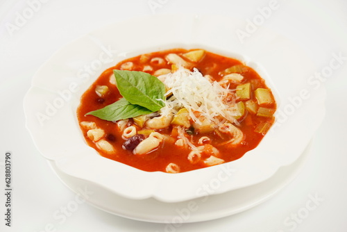 A bowl of minestrone soup with mix of vegetables. Italian cuisine