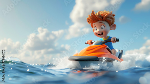 A boy is riding a jet ski in the ocean