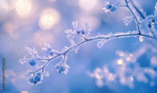 A branch covered in frost and snow